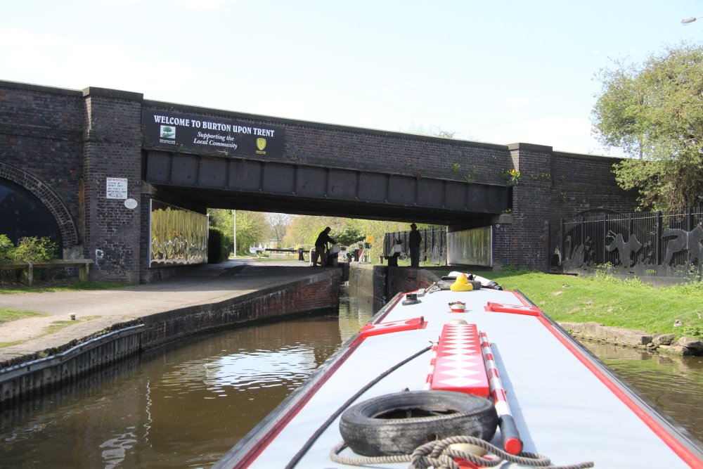 The Trent and Mersey canal is a few streets away. Barges, holiday makers, fry-ups at Shobnall Marina café, watching and helping at Dallow Lock, gardens backing on to the towpath. I’m put in mind of the Cam. Colour, gentle movement, industrial archaeology, swans guarding their territory and hissing at Og the dog, moorhens and chicks, ducks and ducklings. Delightful.